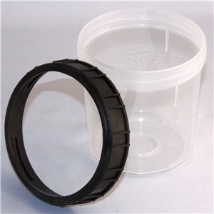 H/O Pressure Cups are available only in the Mini or the Large size and are fabricated from rigid plastic and include a full coverage lid/collar assembly. An integrated pressure relief valve is built into these cups and they include a rubber pressure tube to connect to the Spray Gun pressure port.